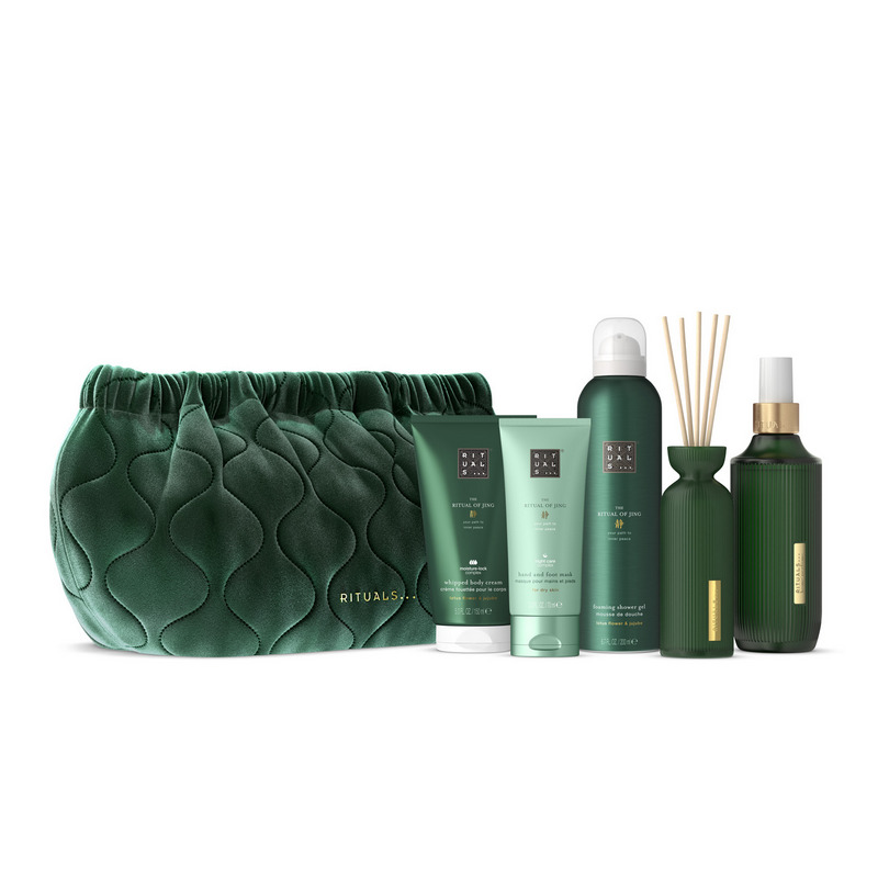 Een kalmerend ritueel dat lichaam, geest én omgeving tot rust brengt. Deze uitgebreide set uit de Ritual of Jing-lijn is perfect voor wie op zoek is naar ontspanning en balans: